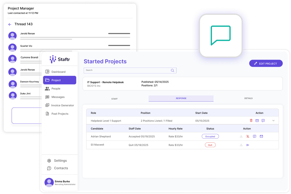 Perfect! Staftr specializes in reactivating dormant contacts and updating availability in real-time.