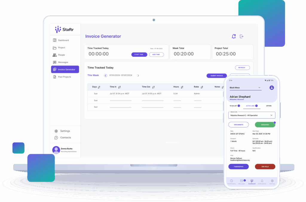 By paying only for active contractors, you gain a financial edge, maximizing your return on investment. Staftr’s customizable nature means it adapts to your specific business needs, offering a personalized experience that aligns perfectly with your agency’s objectives.